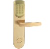 Featurel Korean style digital lock,l ANSI mortise lock bodyl Sound and led indication for all operationl 12 metal keys with long lifetimel 1-8 digit optional password, normal 10 users(can be enlarged).l Mechanical key for emergency and deadbolt inside.l Low power consumption 6 AA alkaline battery can drive lock work 1 yearl Can be set to Unlock mode for meetings or other casesl Alarm When input the wrong password continuously for more than 7times,and low batteryTechnical IndexItemDescriptionSIZE65*270*70mmUser capacityCapacity: 10 groups passwords (Group 0 to 9)Power Supply6pcs AA Alkaline BatteriesBattery Lifeunlocking more than 35000 times, can last for more than one yearEnvironment-10 -45 °C temperature and humidity 20%-80%Identification MethodPassword, card, card+password